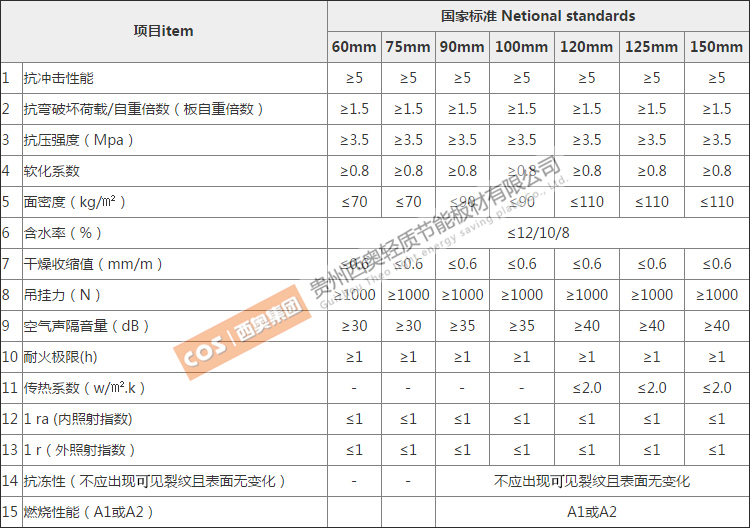 輕質(zhì)墻板產(chǎn)品技術(shù)性指標(biāo):