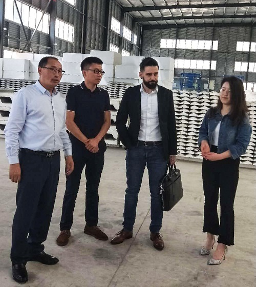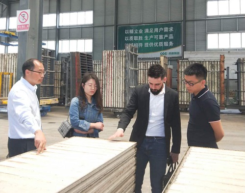 在生產(chǎn)基地,楊景龍為Nielsen進(jìn)行輕質(zhì)節(jié)能墻板防火特點(diǎn)現(xiàn)場(chǎng)展示,讓客戶親自體驗(yàn)了墻板的重量輕、防火性好等特性。并向Nielsen介紹,目前西奧的墻板生產(chǎn)能力居中國(guó)西南地區(qū)前列,并且產(chǎn)品已出口東南亞、非洲等多個(gè)國(guó)家。