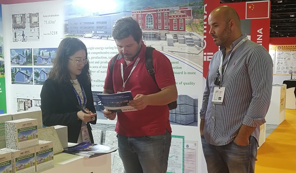 產(chǎn)品綠色、健康、環(huán)保,這是客戶最關(guān)注的問題?催^西奧集團(tuán)的快速裝配式別墅,再用手機(jī)上觀看墻板的防火、防水實(shí)驗(yàn)后,觀展客戶紛紛索取資料并留下聯(lián)系方式。